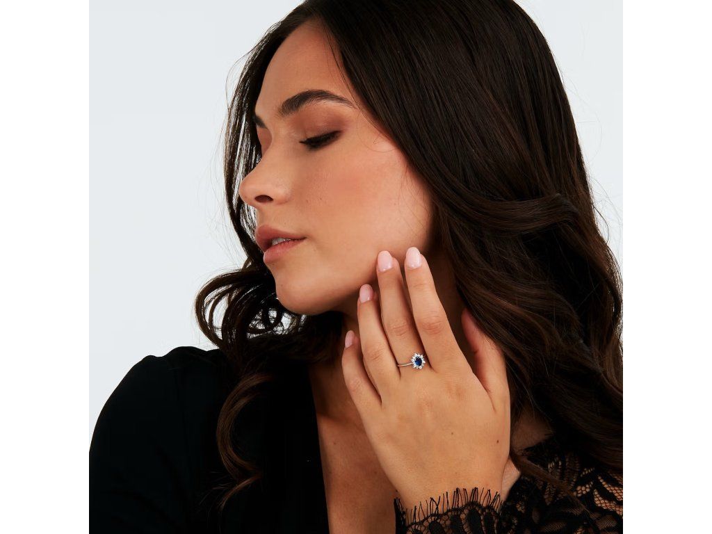 Jeho exkluzivní design modelu Princess přitahuje pozornost kombinací zirkonů v sytě modré barvě spolu s jemnými perlami o průměrech 6,4 mm, 1,8 mm a 1,3 mm. Tento dámský prsten ve stříbrné barvě je ideální pro ozvláštnění každodenního vzhledu i pro zářivé speciální příležitosti a dodává outfitu sofistikovaný a moderní detail.
