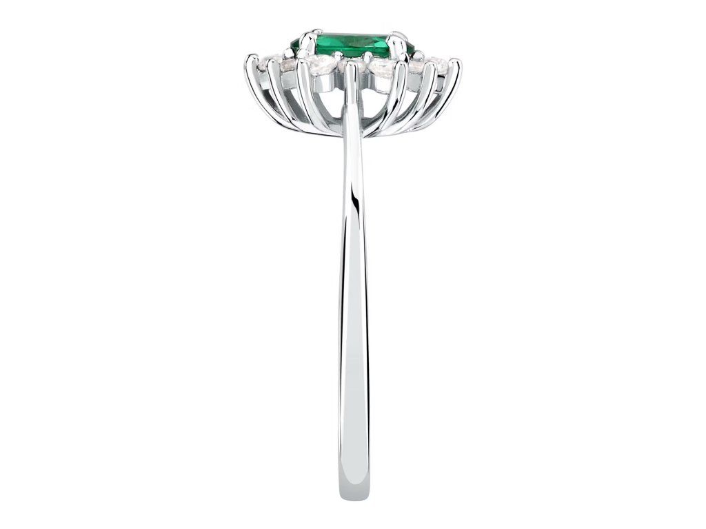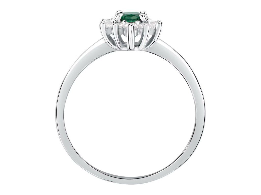 Sytě zelená barva kamenů přitahuje pozornost a činí z tohoto prstenu skutečně výjimečný doplněk pro ni.