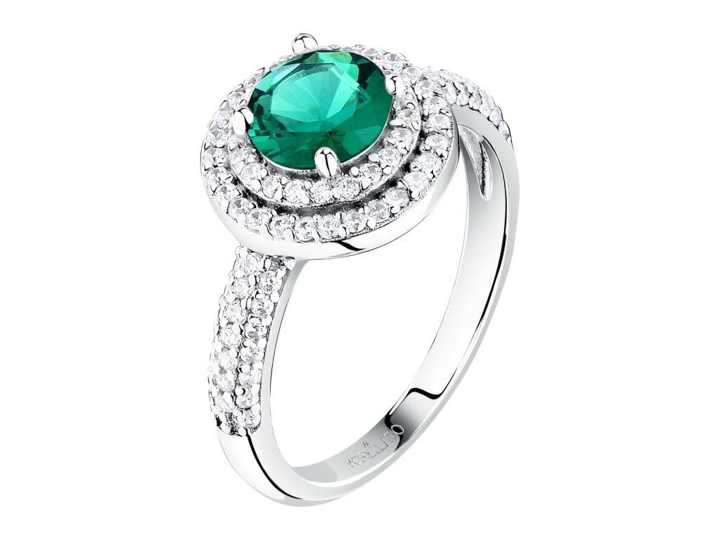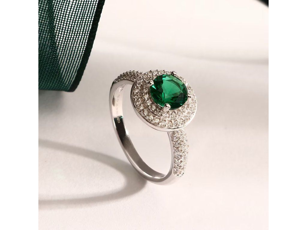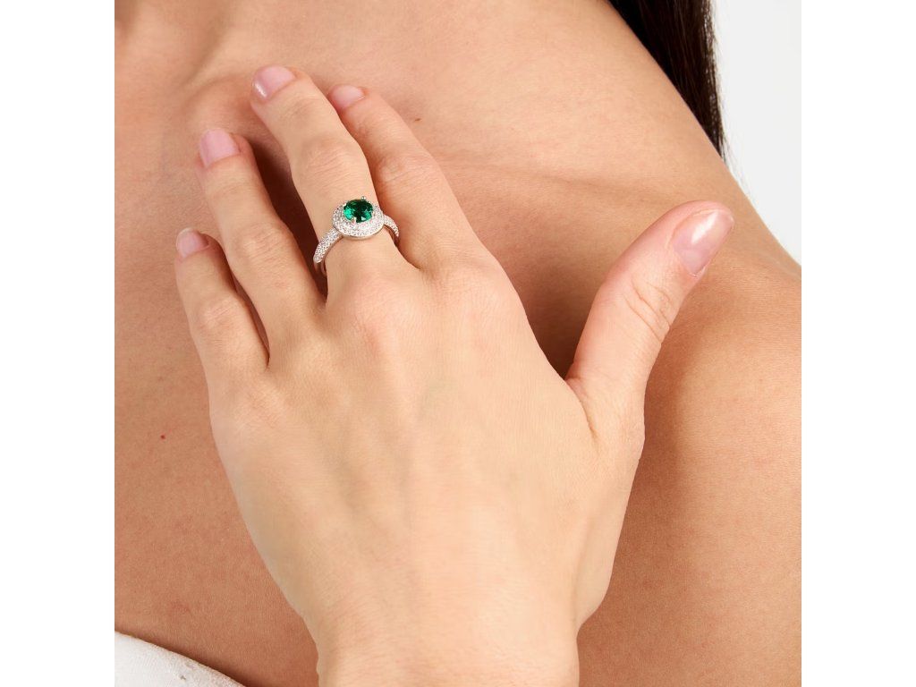 Je vyroben z udržitelného stříbra ve stříbrném odstínu, což zajišťuje dlouhotrvající lesk i maximální pohodlí při nošení. Prsten je zdoben zářivými zelenými zirkony, které zachycují světlo a vytvářejí výrazný a atraktivní prvek.