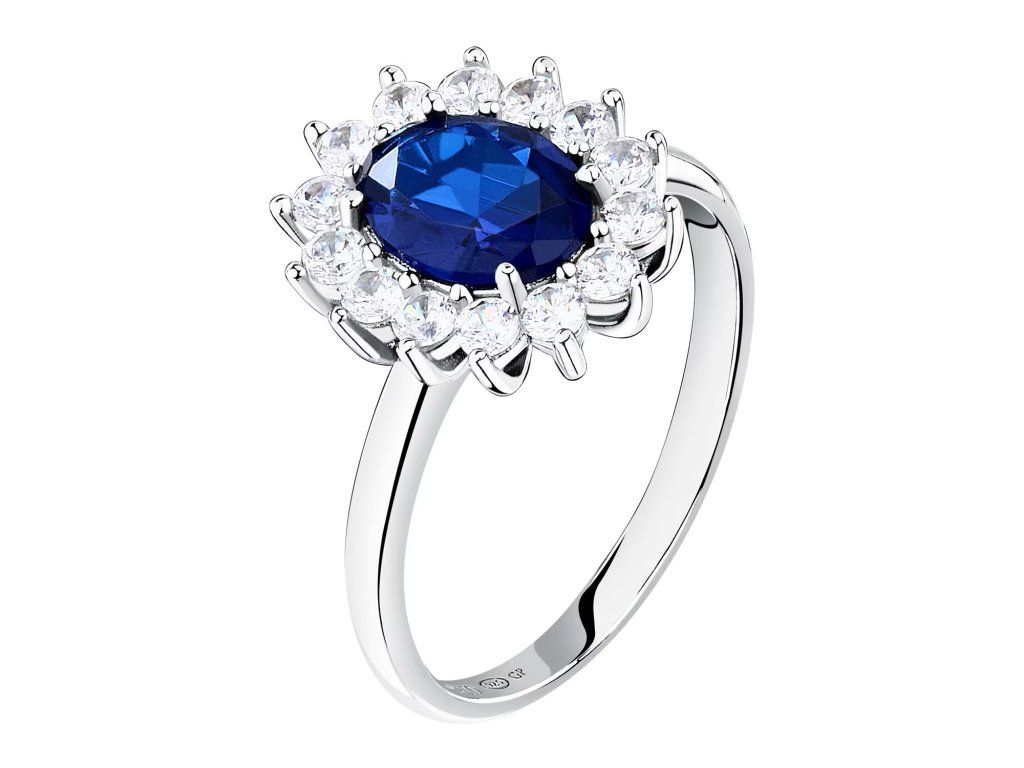 Je vyroben z udržitelného stříbra, které zajišťuje dlouhou životnost a trvalou brilanci, a je zdoben modrými zirkony. Tyto detaily vytvářejí harmonický kontrast a dodávají prstenu výrazný světelný efekt.