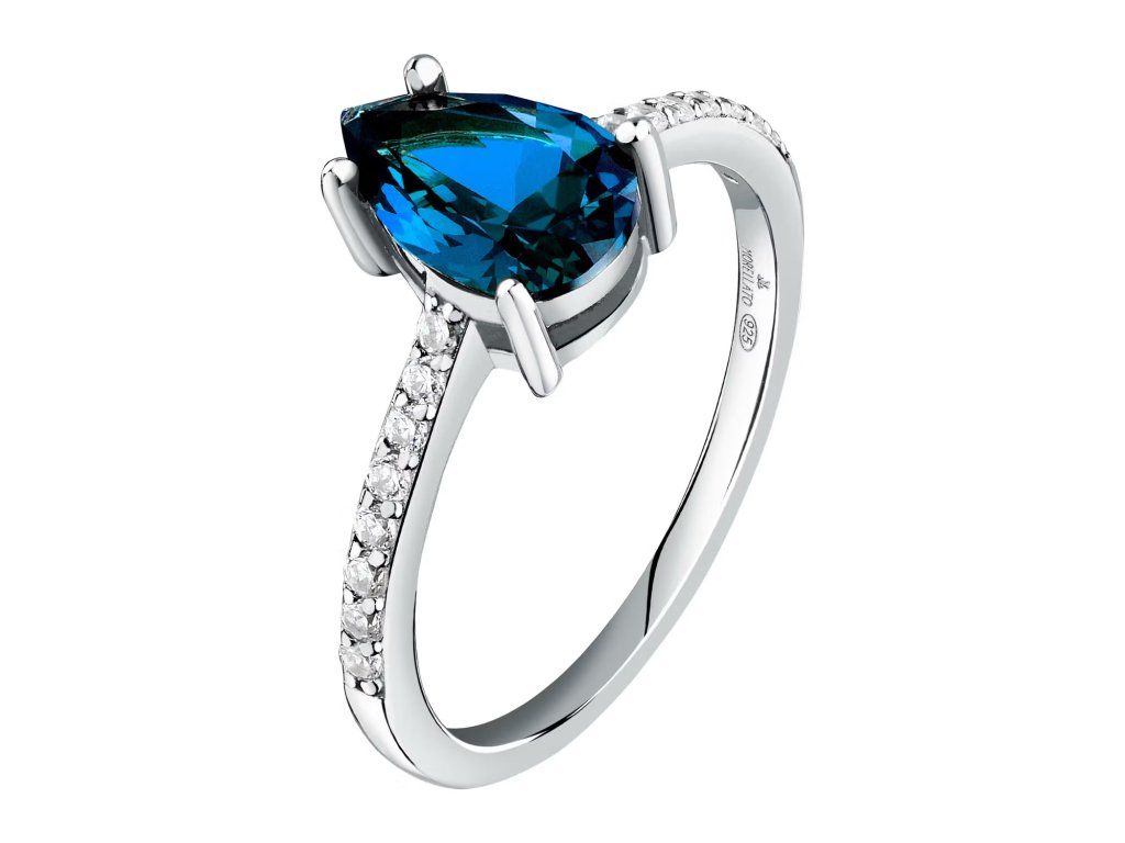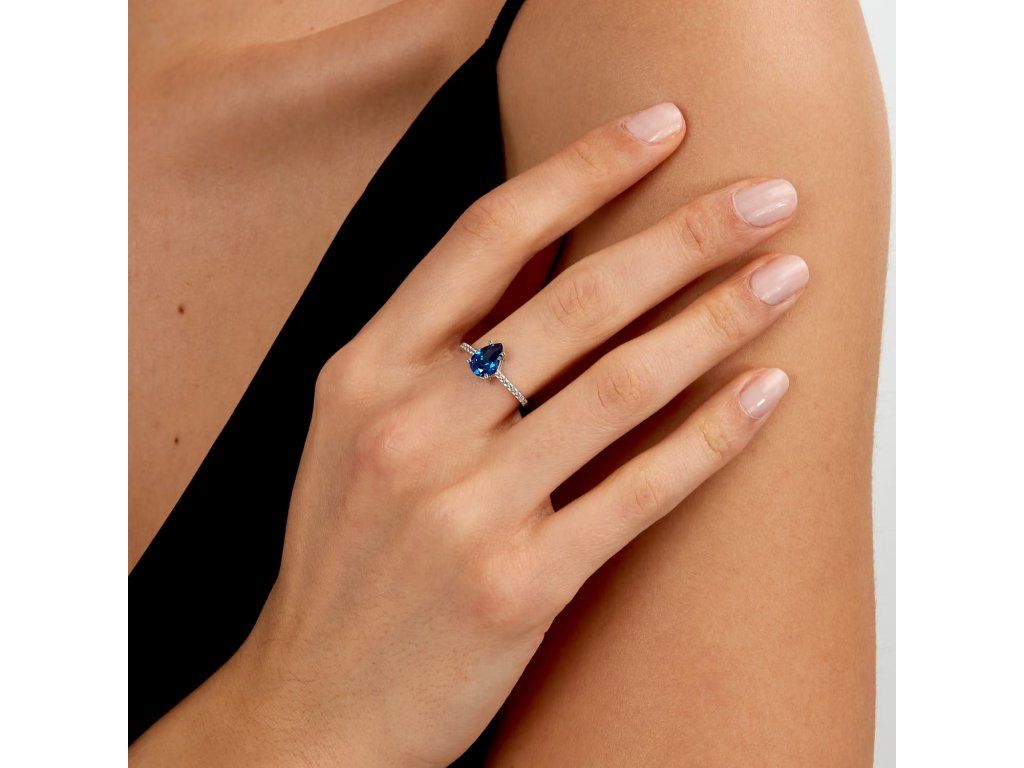 Jeho design je ozdoben zářivými modrými zirkony, které mistrovsky zachycují světlo a dodávají šperku nádech barvy i osobitosti. Je ideální pro rozzáření každé příležitosti – od běžného dne až po výjimečné události.