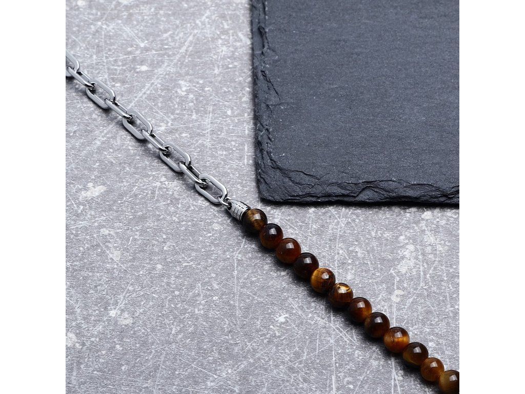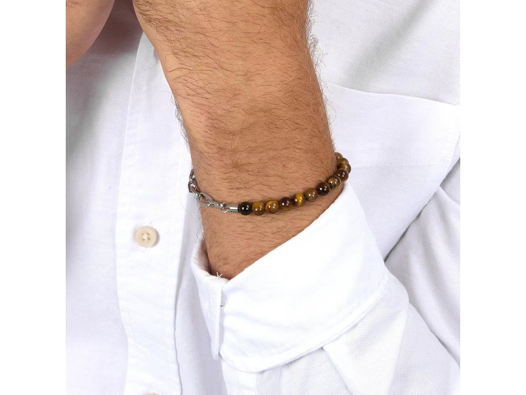 Objev exkluzivní náramek MORELLATO PIETRE, nezbytný doplněk pro současného muže. Tento náramek, pečlivě vyrobený prestižní značkou Morellato, spojuje odolnost oceli s přirozenou krásou drahých kamenů. Korálky z tygřího oka v teplé hnědé barvě o průměru ∅6 mm dodávají výrazný a charakteristický vzhled.