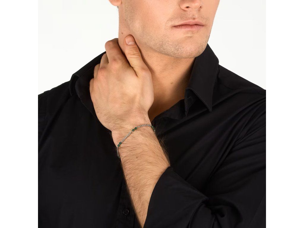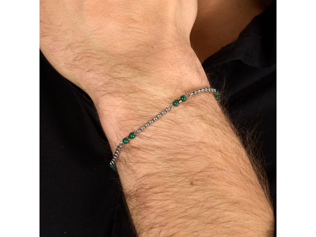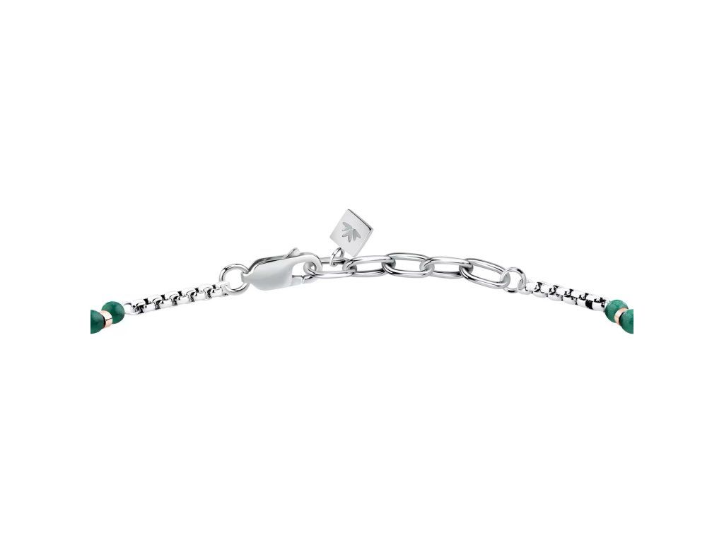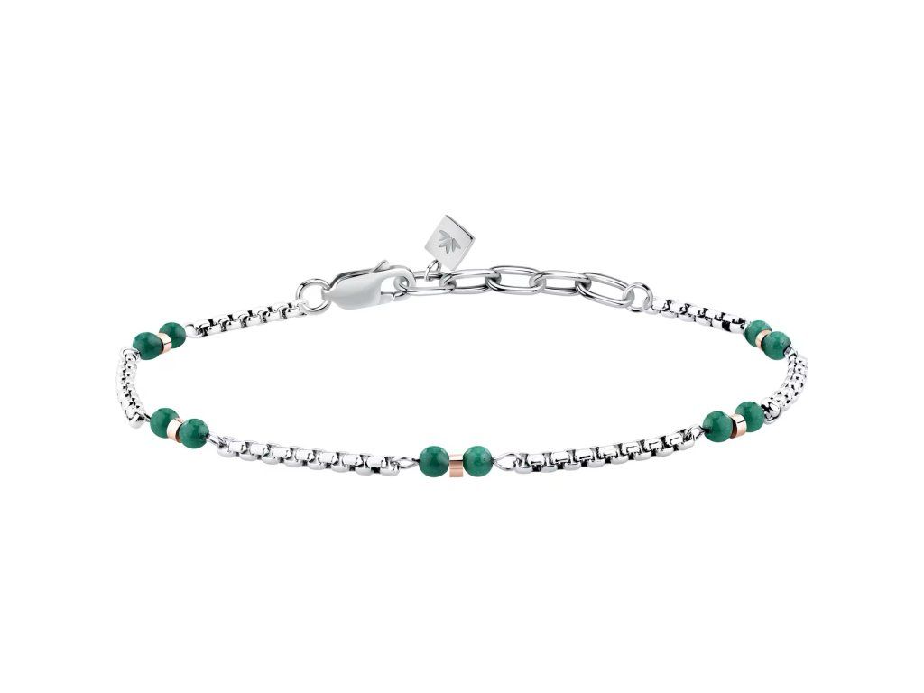 BRACCIALE MORELLATO TERRA - S1756 - Pohlaví: Muž, Velikost: 19|3, Barva: Stříbrná, zelená, Morellato experience: Man, Model: Řetízek, Materiál: Ocel, Hmotnost: 4,600 g, Kámen: Křemen, Barva kamene: Zelená, Certifikát pravosti: Ano, Balení: Originální Morellato