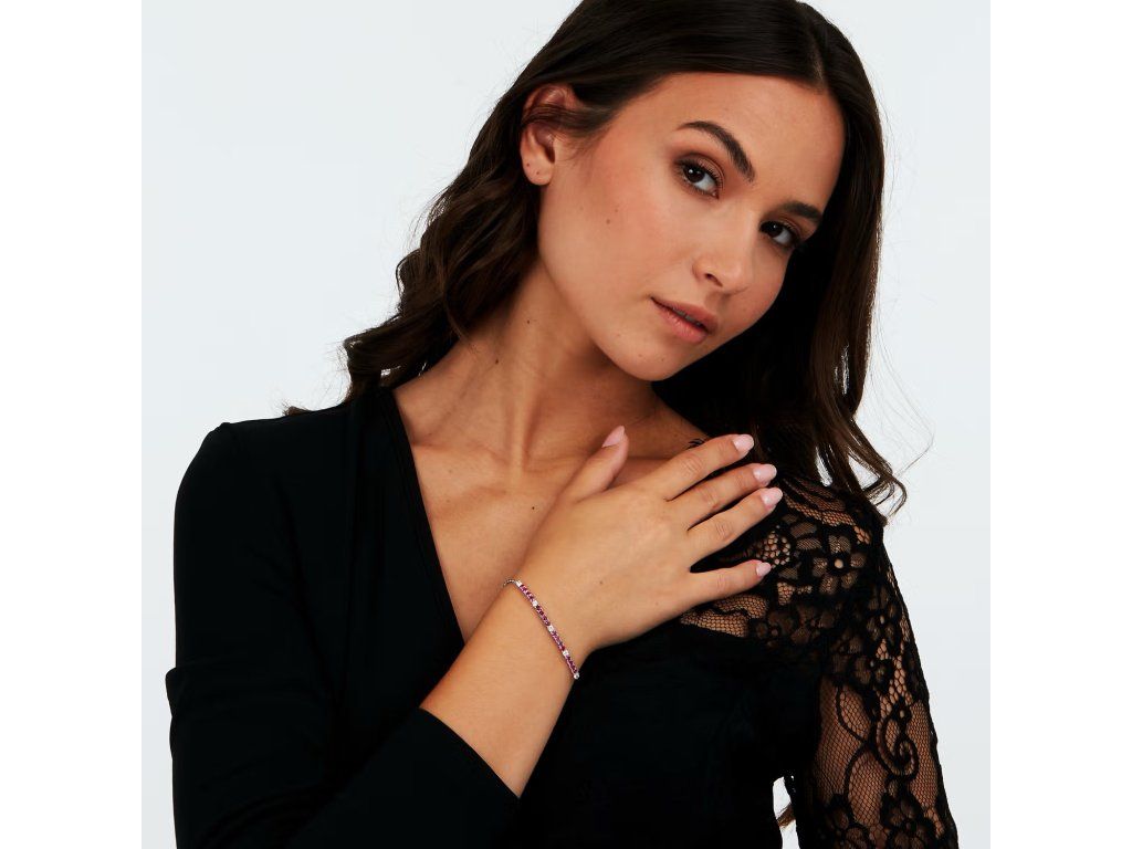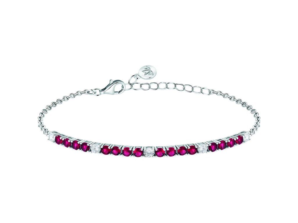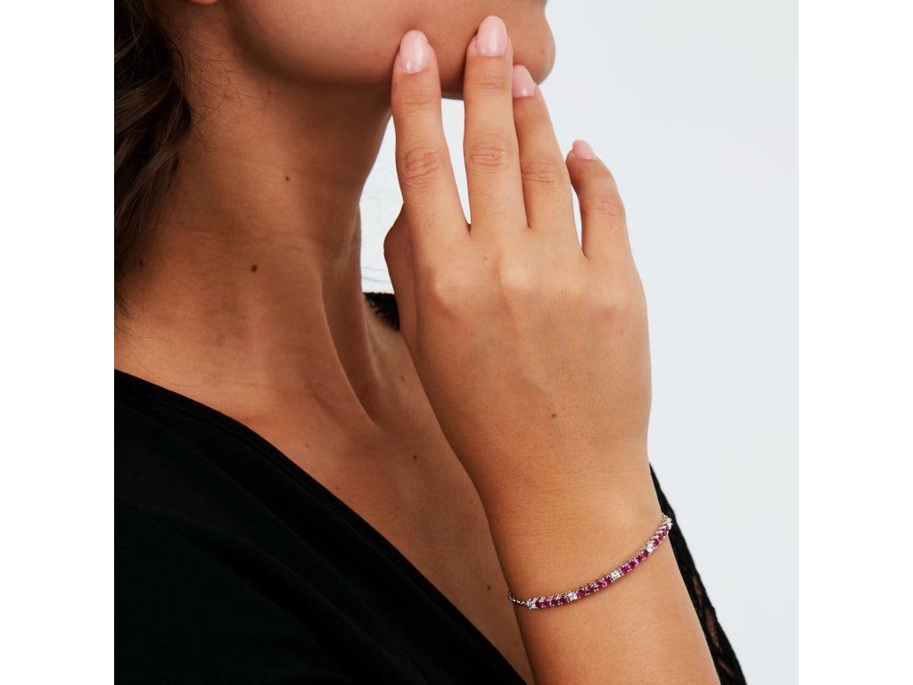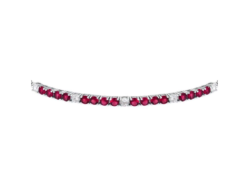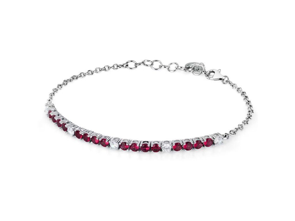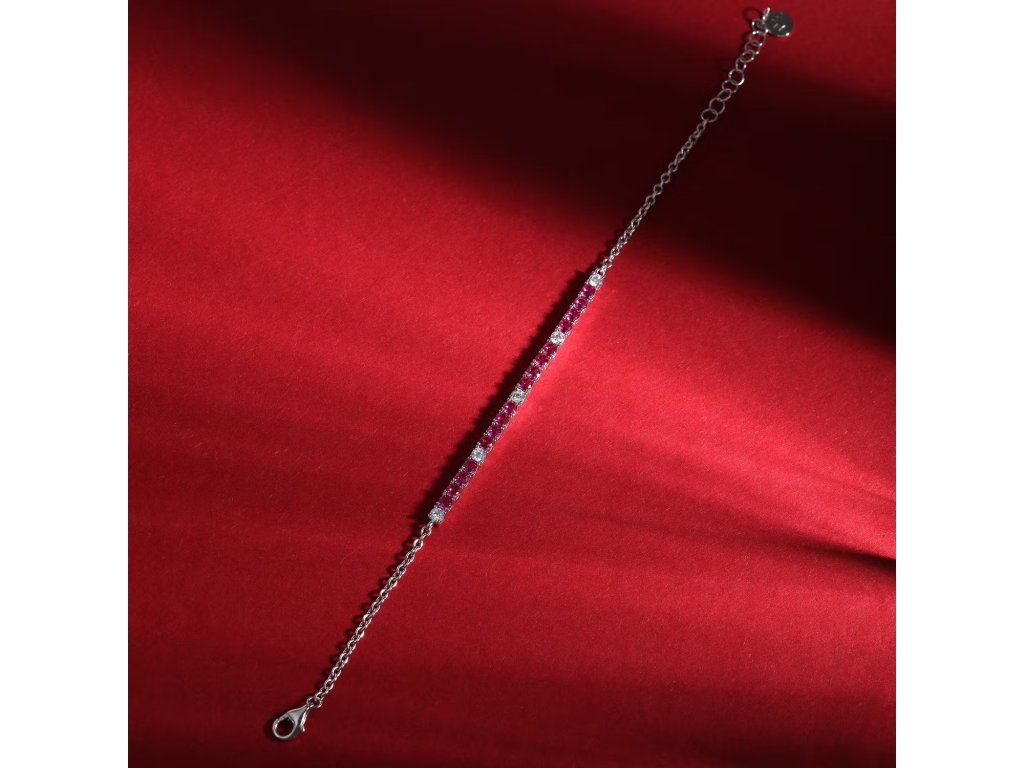 Klasický a nadčasový design typu tennis je obohacen o třpytivé zirkony o velikosti 2,8 mm. Kameny v kombinaci bílé a červené barvy vytvářejí živý a atraktivní kontrast, který upoutá pozornost.