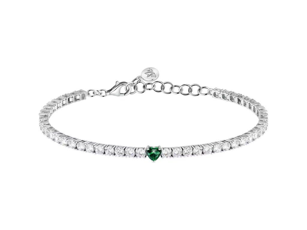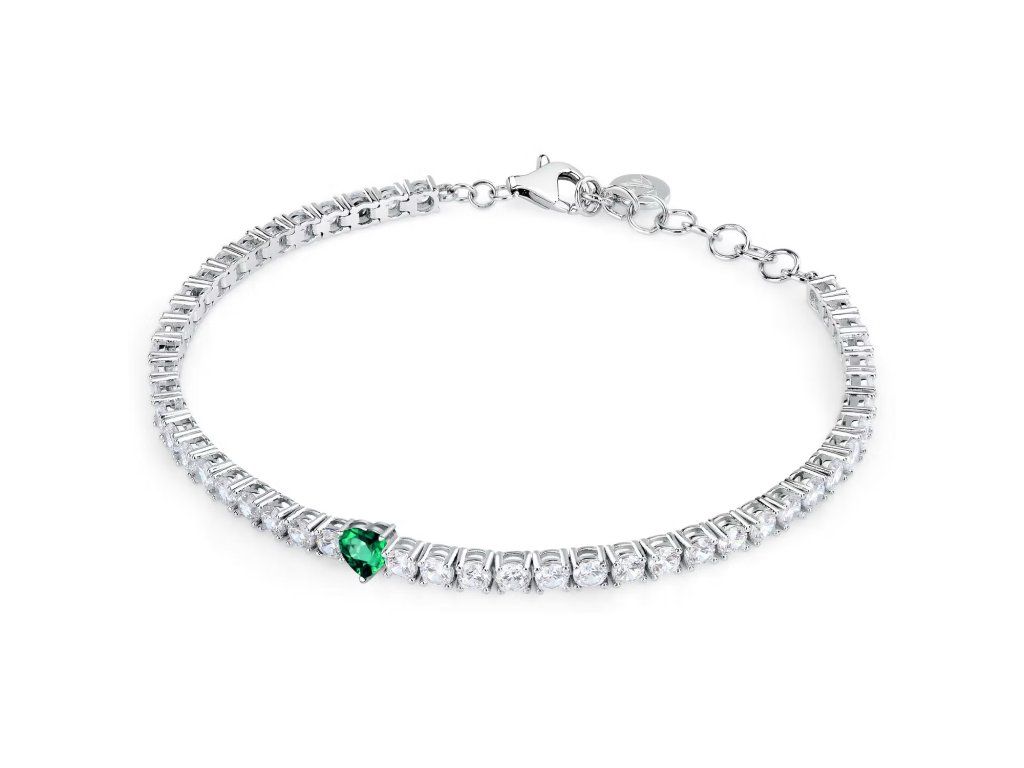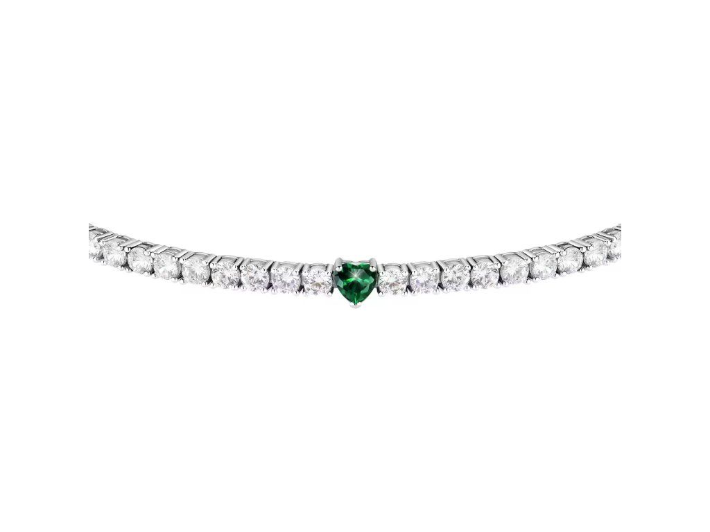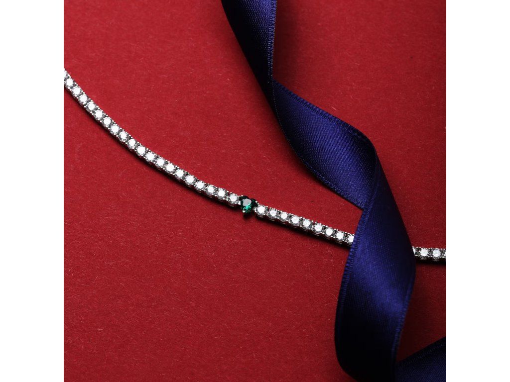Jeho design typu tennis je pečlivě zdoben třpytivými bílými a zelenými zirkony, které jsou přesně zasazeny. Kameny o velikostech 2,8 mm a 4×4 mm vytvářejí fascinující hru světla a živých odlesků.