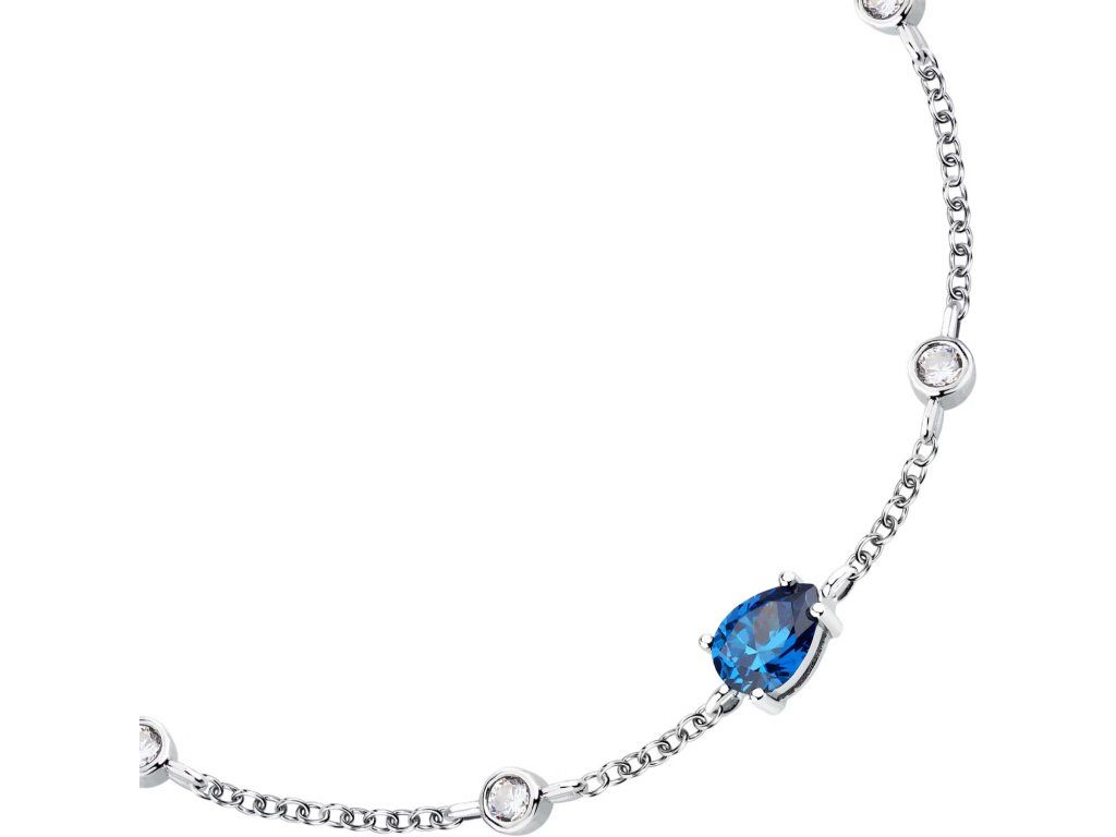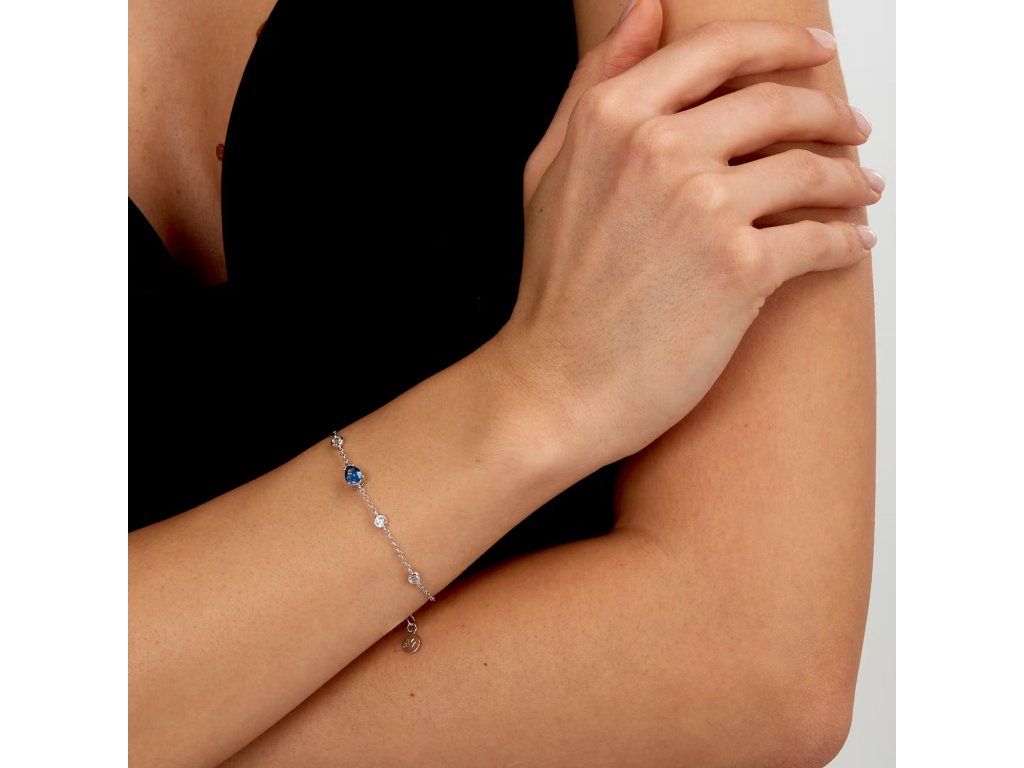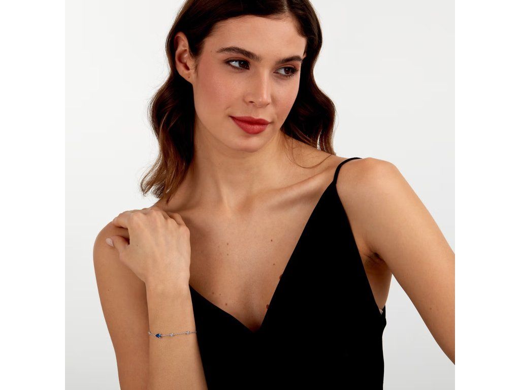 Linie Tesori se vyznačuje modrými zirkony broušenými do tvaru kapky, které jsou umístěny tak, aby přitahovaly pozornost. Tyto detaily dodávají náramku jedinečnost a moderní nádech.