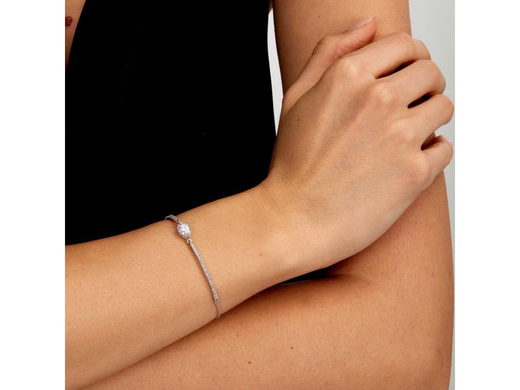 Je vyroben z udržitelného stříbra ve stříbrném odstínu, který zaručuje odolnost a jedinečný lesk. Nadčasový a sofistikovaný design typu tennis je zdoben třpytivými bílými zirkony, které dokonale zachycují světlo a vytvářejí oslnivý efekt na zápěstí.