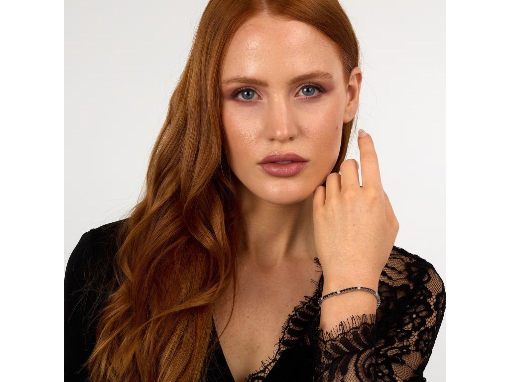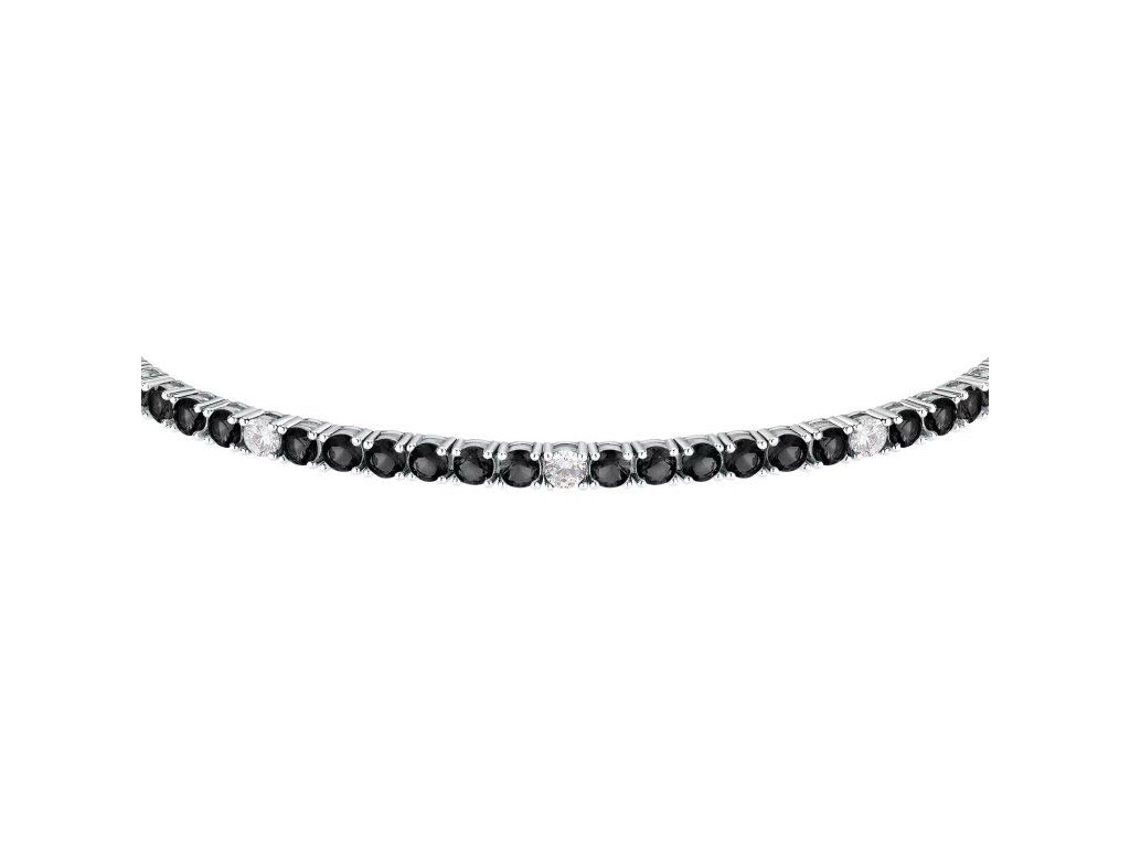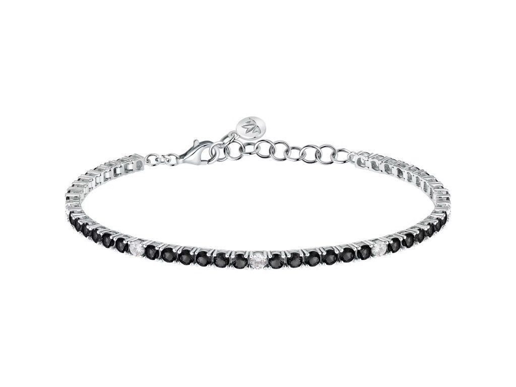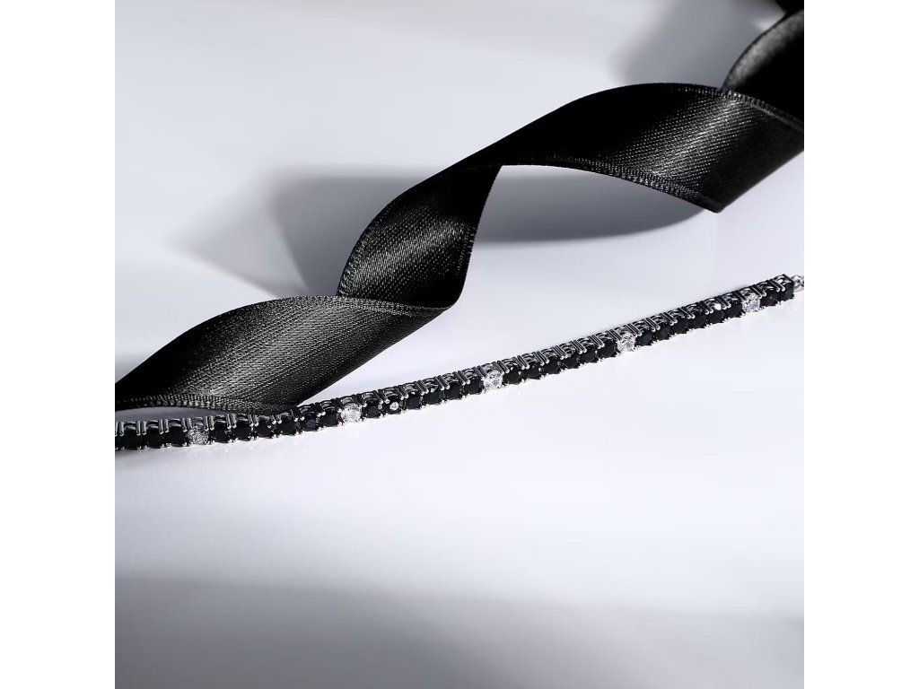 Je pečlivě vyroben z udržitelného stříbra ve stříbrném odstínu, který zvýrazňuje zářivost kamenů. Náramek je zdoben třpytivými zirkony v bílé a černé barvě, které vytvářejí výrazný a současný kontrast.