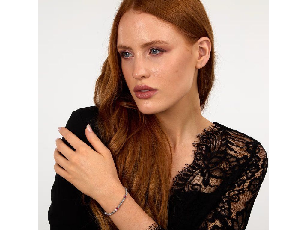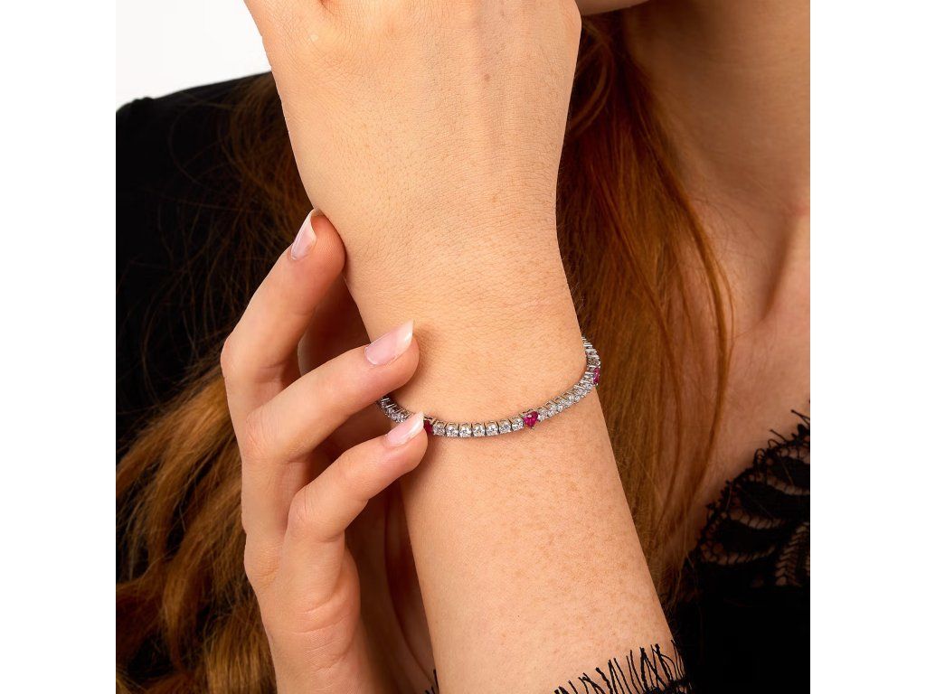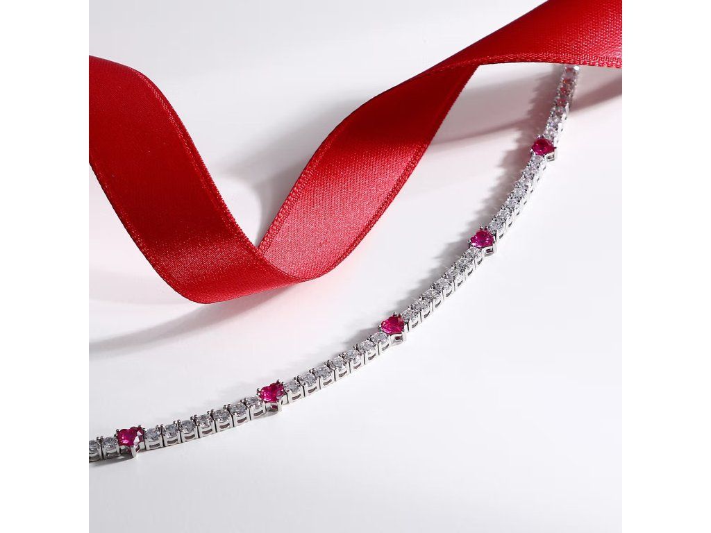 Design je ozdoben zirkony v bílé a růžové barvě, které vytvářejí jemnou a přitažlivou hru světla. Součástí je také symbol srdce, který dodává šperku romantický a osobitý charakter.