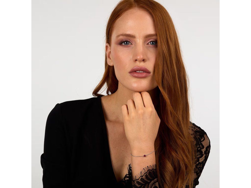 Jeho krásu zvýrazňují zirkony v intenzivní červené barvě, pečlivě vsazené tak, aby zachycovaly a odrážely světlo působivým způsobem.