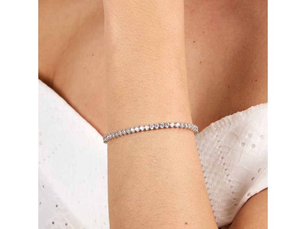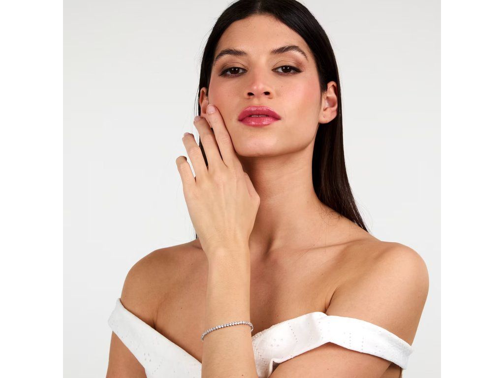 Kombinace udržitelného stříbra a bílých zirkonů dělá z tohoto náramku výrazný detail, který spojuje krásu a uvědomělý přístup a snadno doplní jak každodenní, tak i slavnostní outfit.