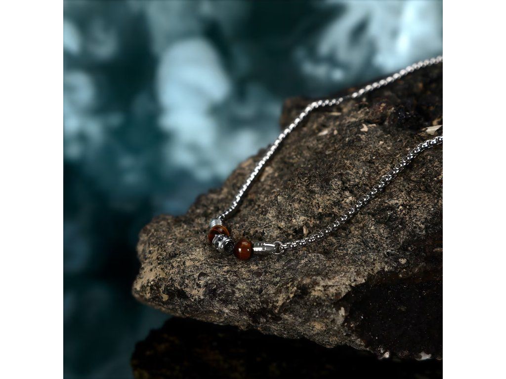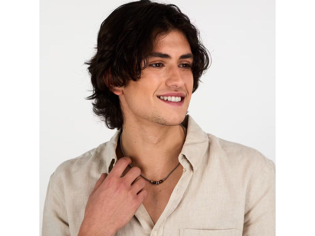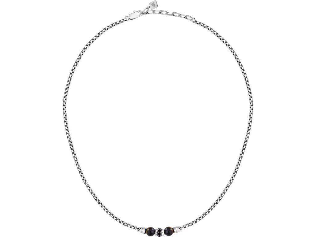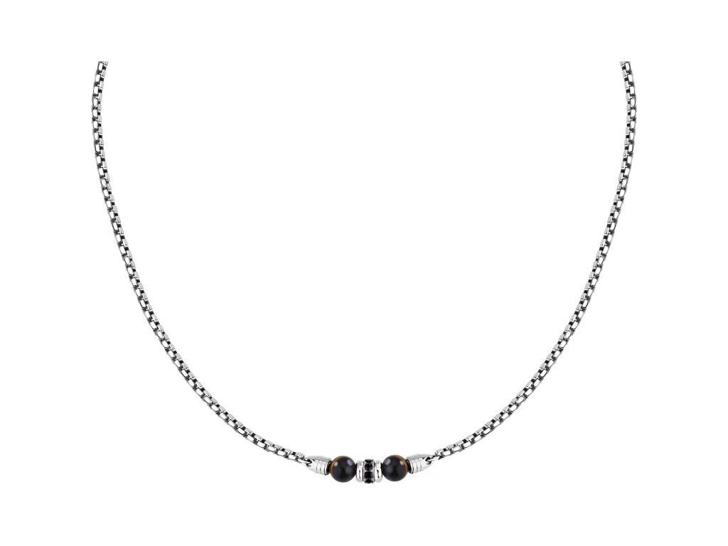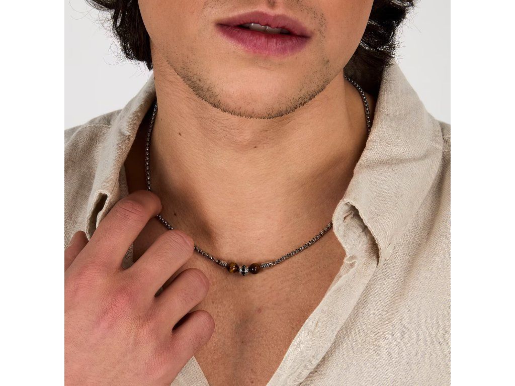 COLLANA MORELLATO PIETRE - S1744 - Pohlaví: Muž, Velikost: 45|5, Barva: Stříbrná, Morellato experience: Man, Materiál: Ocel, přírodní kameny, krystaly, Hmotnost: 13,600 g, Kámen: Tygří oko, Barva kamene: Hnědá, Certifikát pravosti: Ano, Balení: Originální Morellato