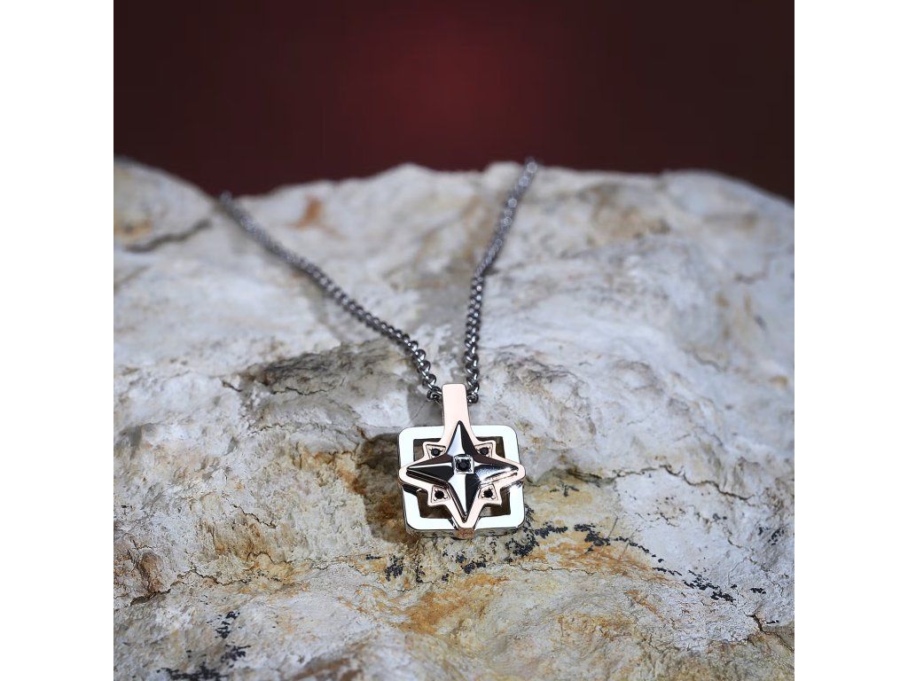 Je vyroben z pevné oceli a visací náhrdelník má černé krystaly o průměrech 1.3 mm a 1.5 mm, které poskytují výrazný lesk. Stříbrné a růžově zlaté povrchové úpravy zajišťují estetiku, která se hodí k různým outfitům a příležitostem a nabízí mnoho kombinací.